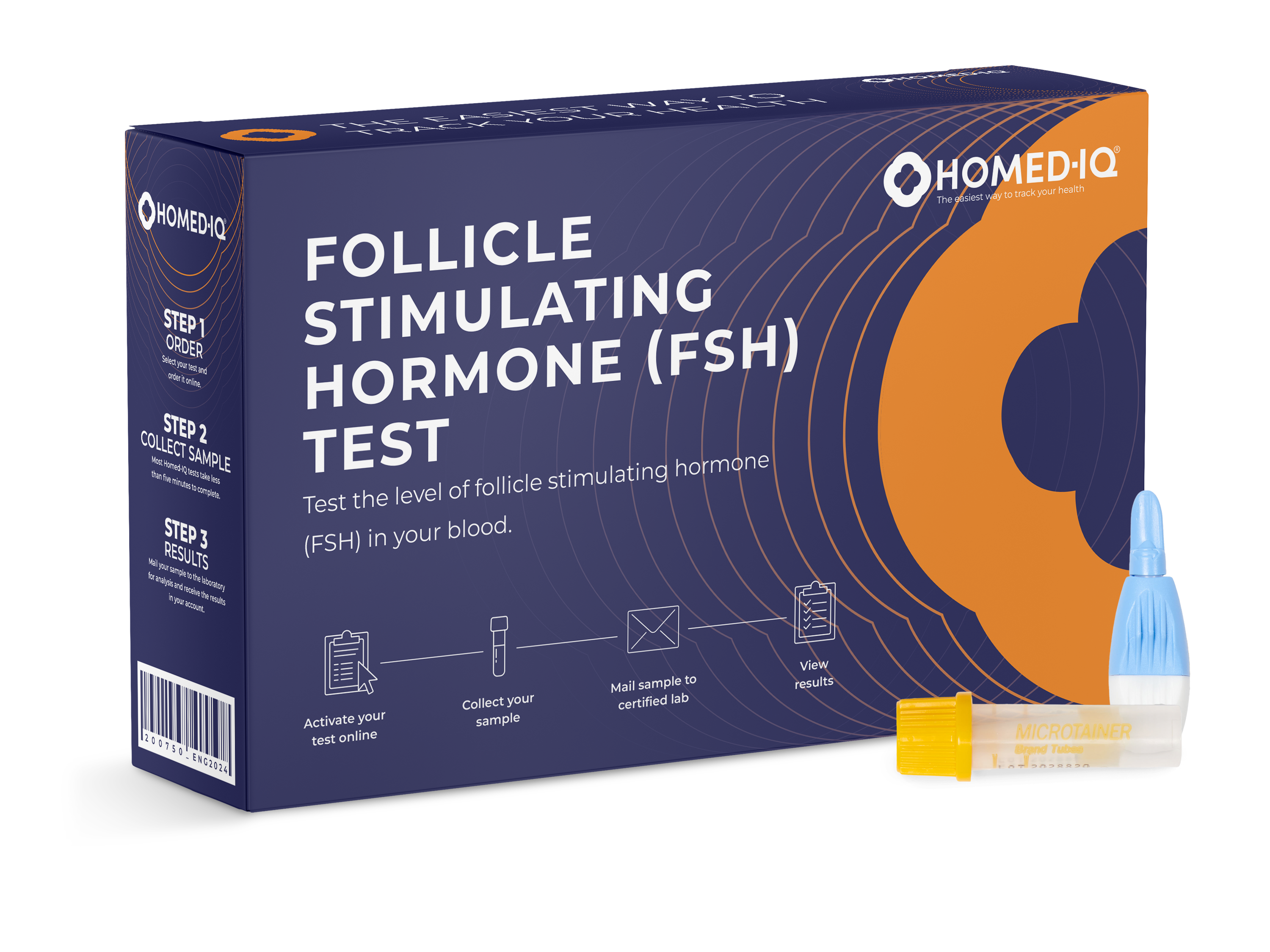 This blood test measures the level of follicle stimulating hormone (FSH) in your blood. This hormone plays an important role in controlling the menstrual cycle, ovulation, and the growth and maturation of eggs in the ovaries. FSH levels naturally increase with age. As the number of available eggs or ovarian reserve decreases, more FSH is needed to stimulate ovarian function. Abnormal FSH levels can impact your fertility or cause unpleasant symptoms such as irregular periods, excessive hair growth, or weight gain. The test requires a finger prick blood sample that you can easily take from home. Your sample will then be examined by a certified laboratory and you will receive the results within a matter of days. It couldn’t be easier!