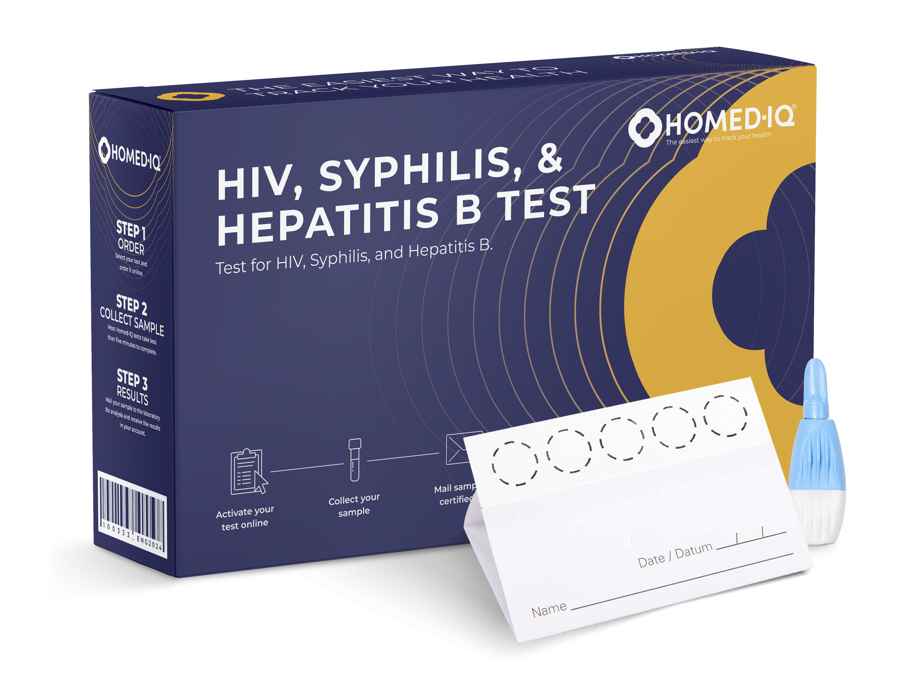 Mit dem HIV-, Syphilis- und Hepatitis-B-Test von Homed-IQ erhalten Sie mehr Einblick in Ihre sexuelle Gesundheit – ganz ohne den Besuch bei einem Hausarzt oder in einer Klinik. Dieser einfache Test prüft auf die häufigsten sexuell übertragbaren Infektionen, die im Blut nachweisbar sind, und kann in wenigen Minuten bequem zu Hause durchgeführt werden. Im Gegensatz zu STI-Tests in einer Klinik müssen Sie nur eine kleine Menge Blut mittels Fingerstich entnehmen.